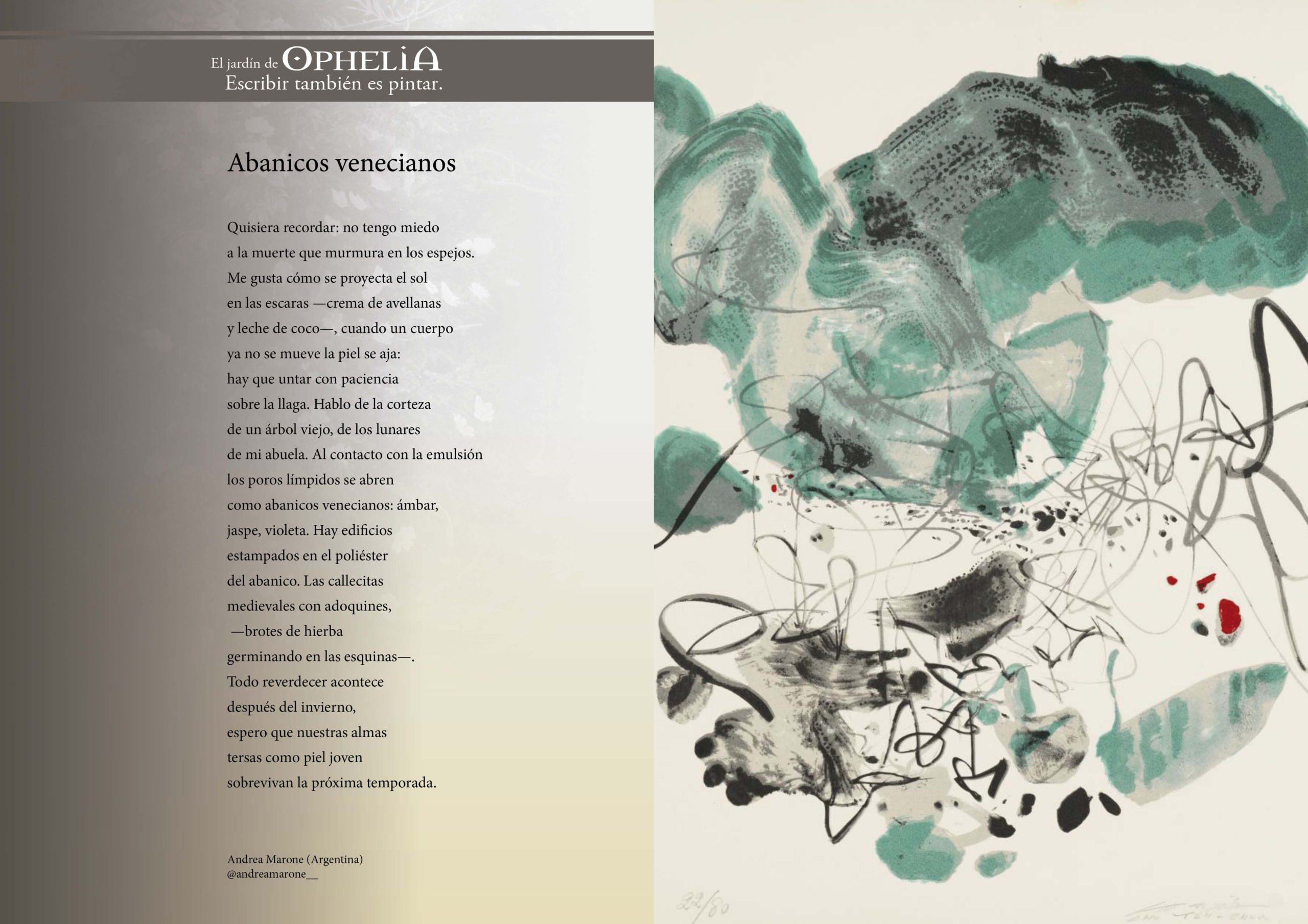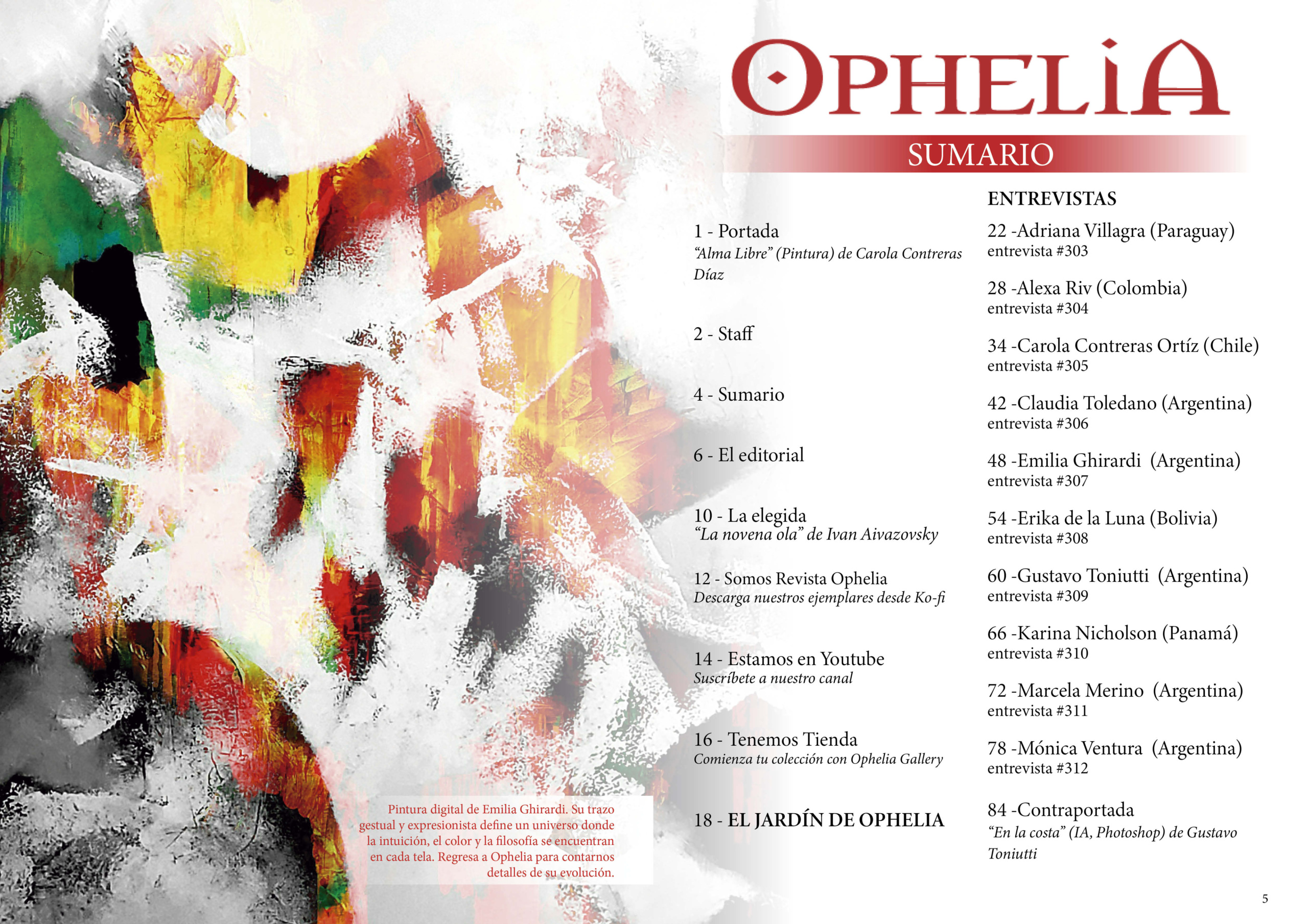 ↪️ CURIOSIDADES DE ESTA EDICIÓN: De nuevo “El jardín de Ophelia”, un espacio literario dentro de la revista, con textos de los escritores argentinos Andrea Marone y Carlos Carrizo.