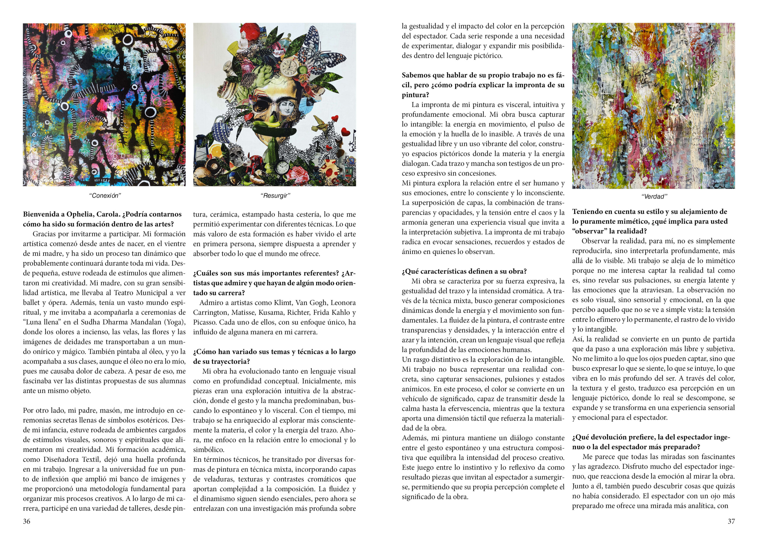 Ophelia es una plataforma de arte contemporáneo que difunde la obra de artistas visuales de distintos países. Además de editar esta revista, organizamos los Encuentros Ophelia en YouTube: charlas en vivo con artistas para conocer sus mundos creativos; y los Conversatorios Ophelia, donde debatimos sobre el oficio, los lenguajes visuales y la cultura de nuestro tiempo.