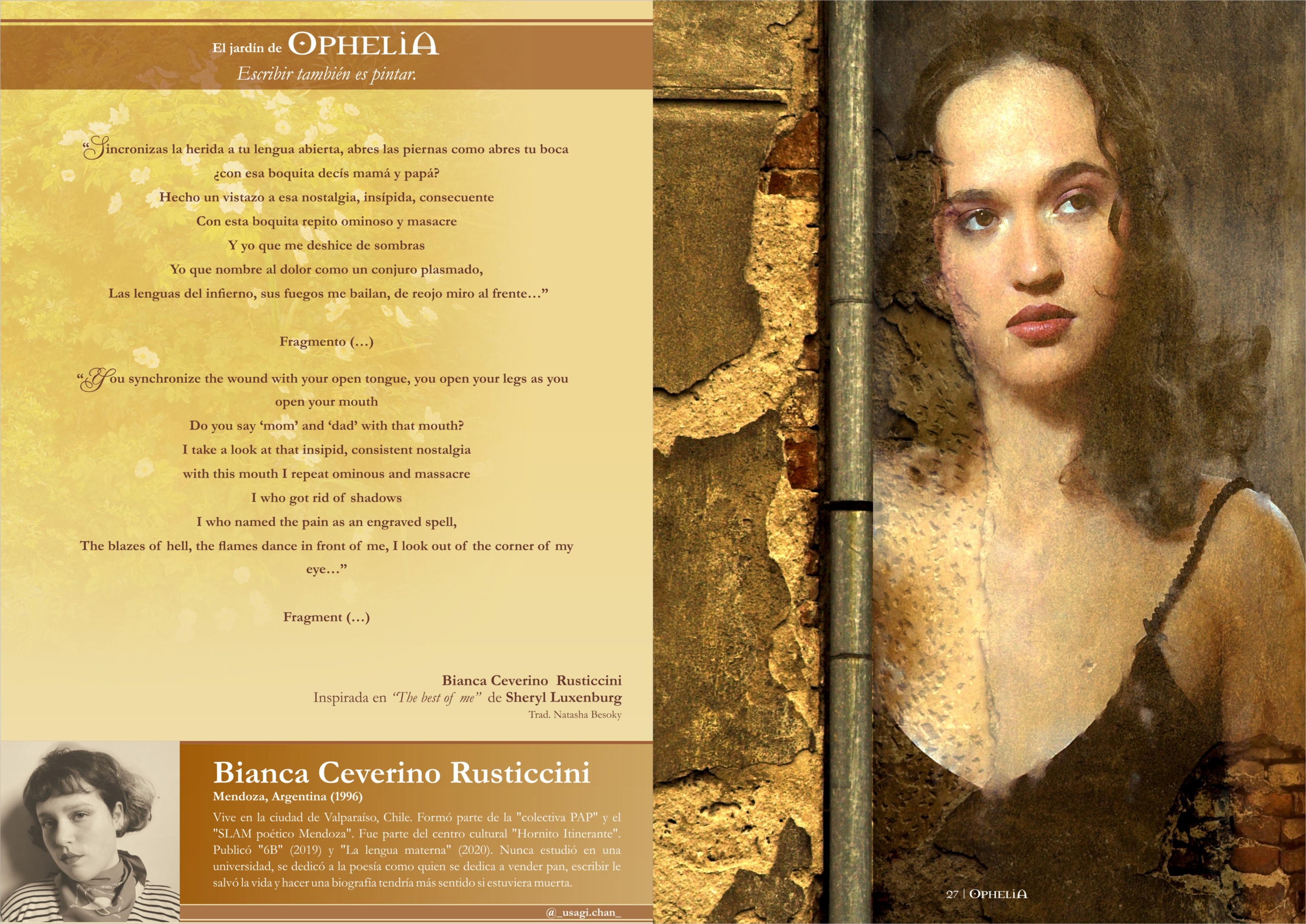 ️ Las 10 poetas del dossier «El Jardín de Ophelia»: — Ana Suárez — Bianca Ceverino — Denisse Grifth — Eugenia Simionato — Josefina Rousseau — Ludmila Cabana — Luna — Nadia Sol Camelia — Paola Muñoz — Rosabetty