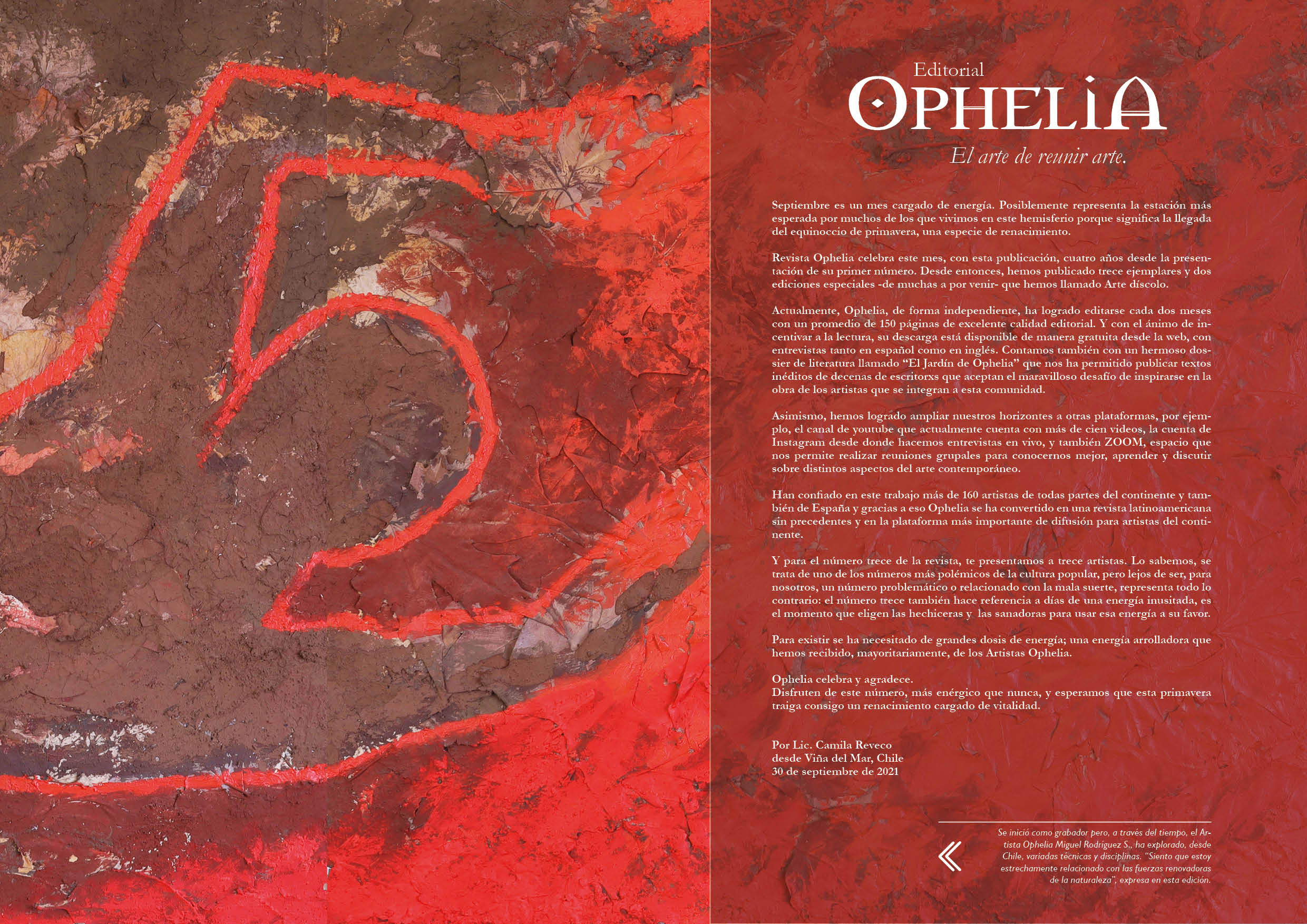❤️ Descarga el decimotercer número de Revista Ophelia y disfruta de 108 páginas de entrevistas a trece de los artistas plásticos más destacados de la escena contemporánea. ↪️ CURIOSIDADES: Este número se publicó en septiembre de 2021 desde Viña del Mar, Chile.