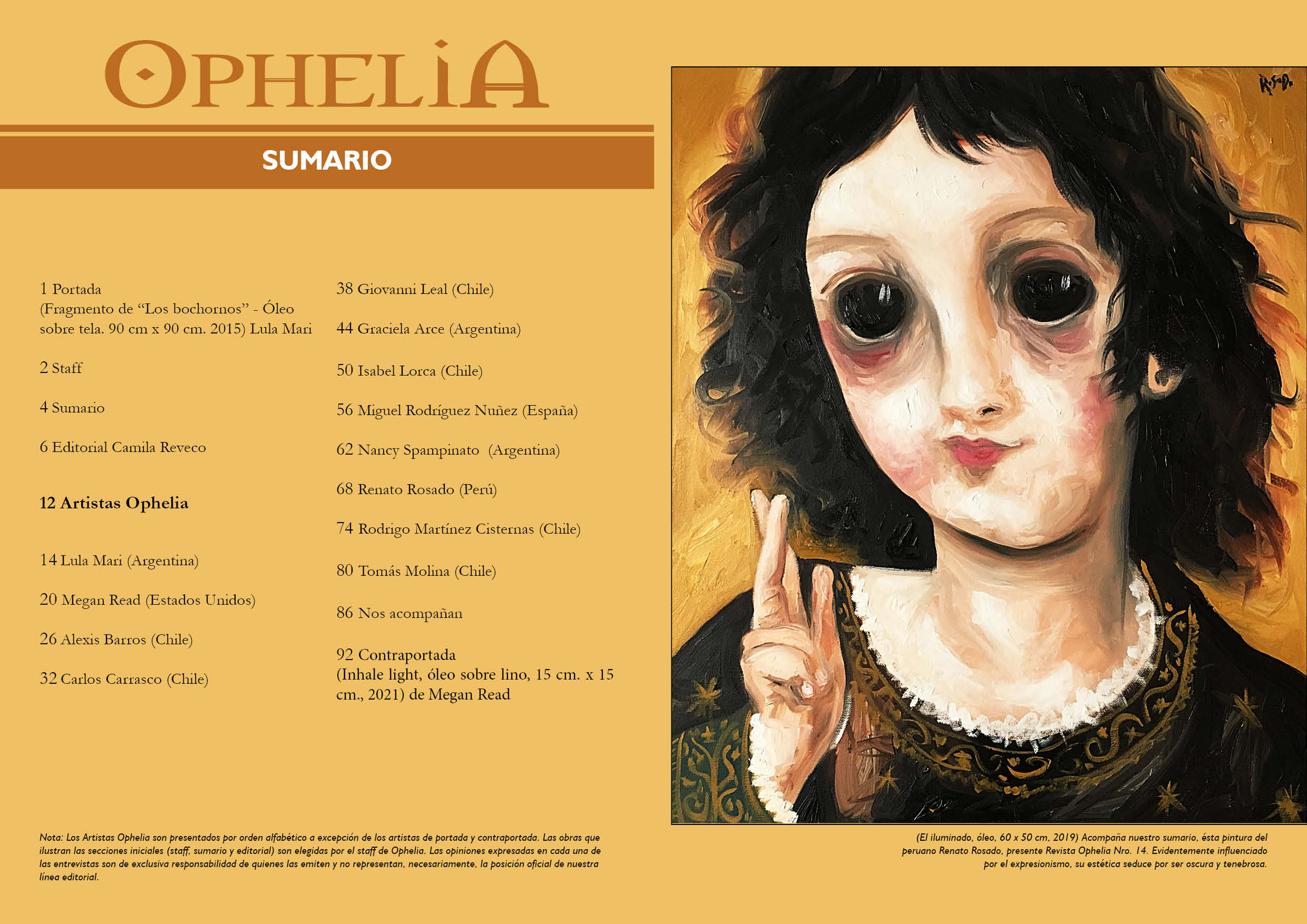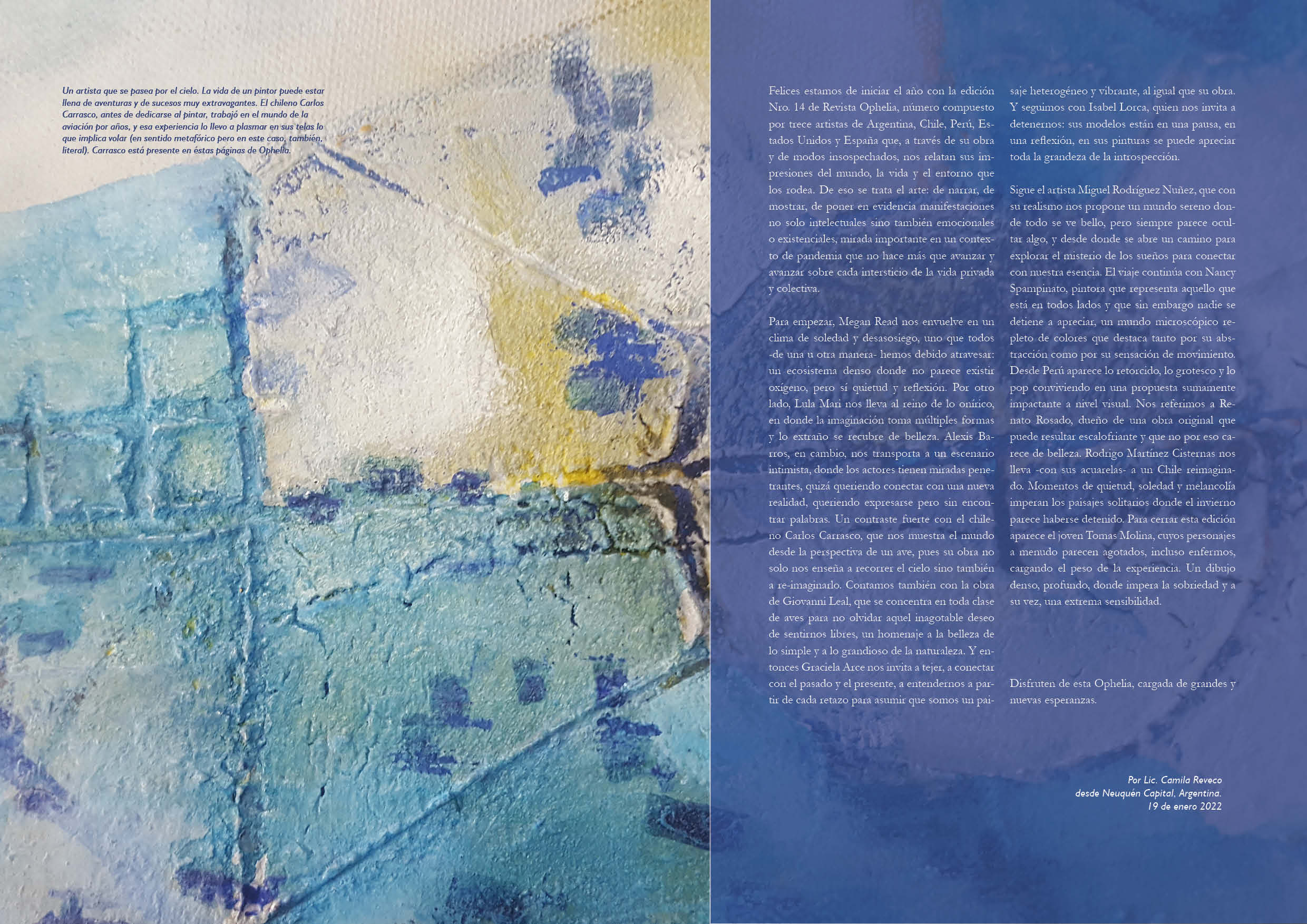 ❤️ Descarga el decimocuarto número de Revista Ophelia y disfruta de 92 páginas de entrevistas a doce artistas plásticos de la escena contemporánea. Este número se publicó en enero de 2022 en Neuquén, Argentina.