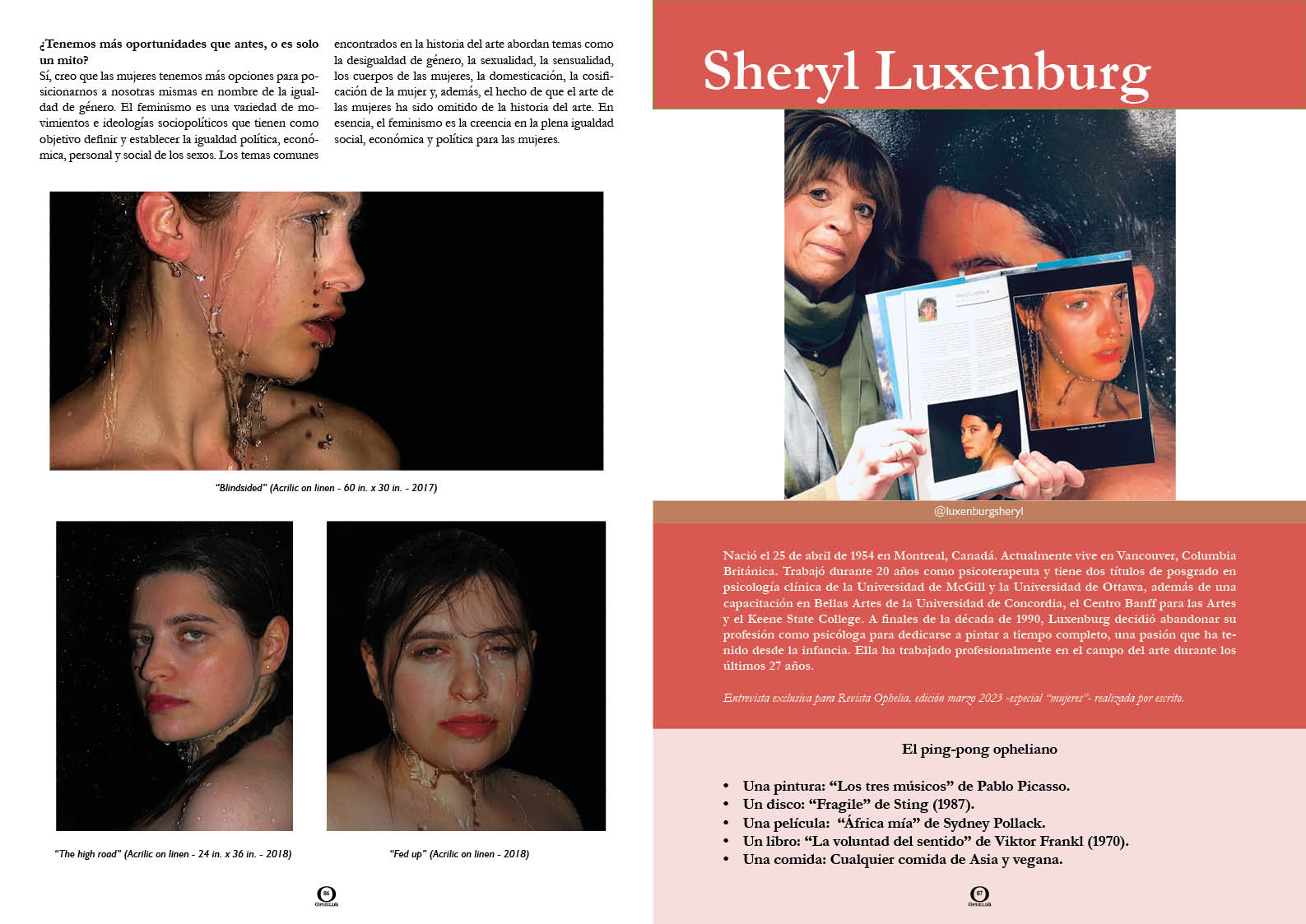 ❤️ Descarga el vigésimo número de Revista Ophelia y disfruta de 102 páginas de entrevistas a dieciséis artistas de la escena contemporánea.