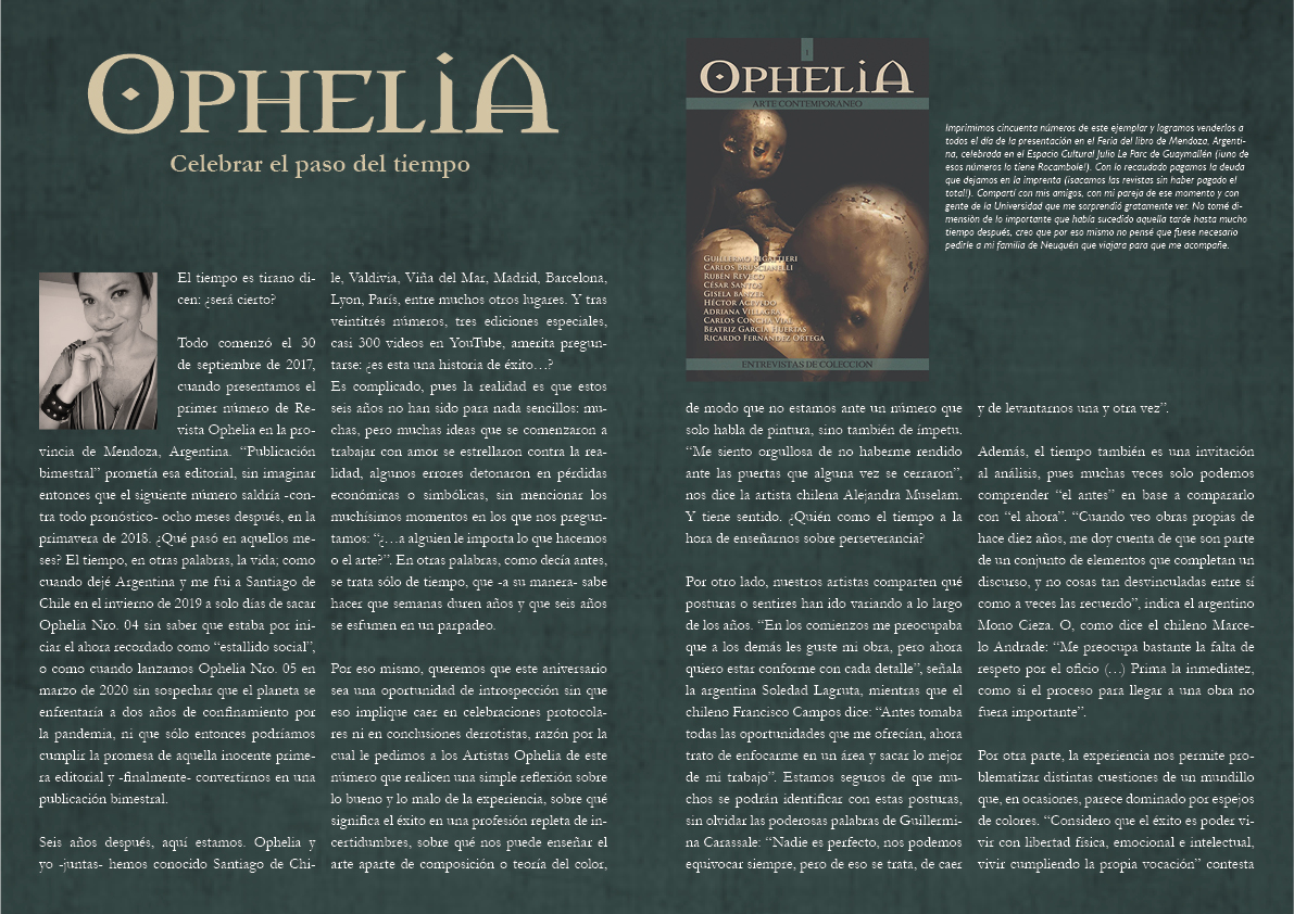 OPHELIA es una plataforma que difunde la obra de artistas visuales de distintos países. Además de editar esta publicación, realizamos los «Encuentros Ophelia» en nuestro canal de YouTube: charlas en vivo con los artistas de la comunidad para conocer más de sus mundos creativos; y los «Conversatorios Ophelia» para debatir distintas temáticas en relación al oficio, porque en Ophelia no solo buscamos crear espacios de difusión, sino también de reflexión en torno al arte y la cultura de nuestro tiempo ❤️