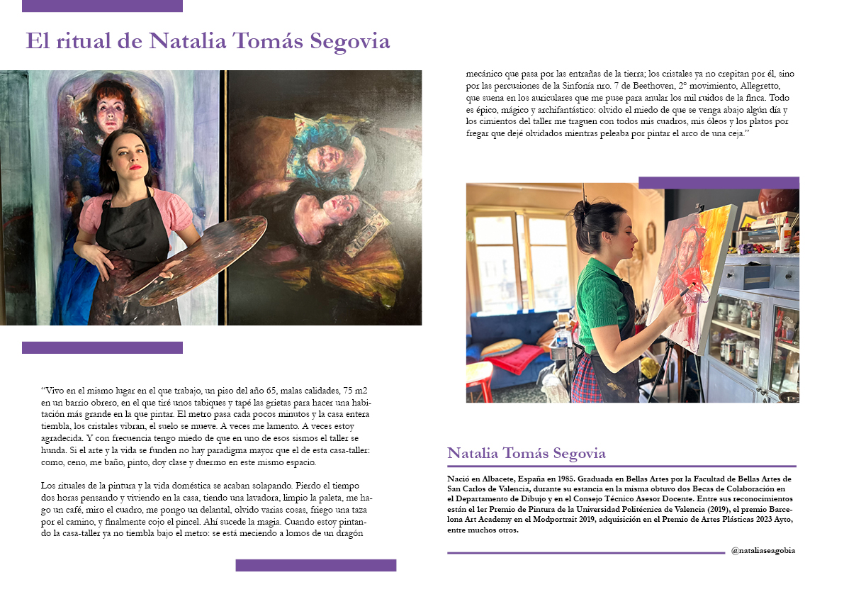 ↪️ Además, creamos otra sección que busca transportar al lector al sitio donde sucede la magia: el atelier, desafiando a los artistas a compartir los rituales e idiosincrasias de su proceso creativo.